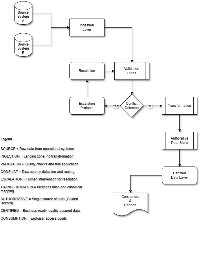 | Flagged conflicts routed to the appropriate Data Owner | Governance Process |